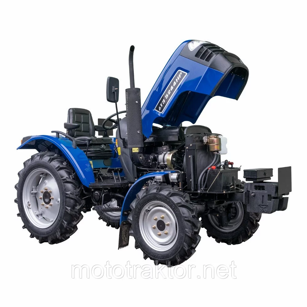 ДТЗ 5244НР – новая модель, которая обладает всеми качествами ДТЗ 5244НРХ, но оснащена колесами стандартной ширины. На тракторе установлен двигатель увеличенного объёма, по сравнению с 24 сильными тракторами других торговых марок (1,9 л. вместо 1,53 л.), что дает заметное преимущество в крутящем моменте на низких оборотах перед тракторами аналогичной мощности.