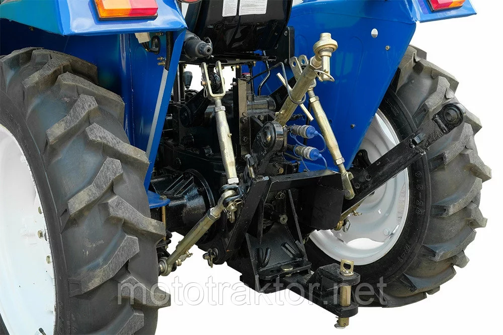 Колея трактора регулируется по удобным вам параметрам. Передняя в диапазоне 1080-1280 мм, задняя– 1050-1310 мм. Важный момент для тех, кто планирует оснащать модель дополнительными инструментами и работать с разными типами междурядий.