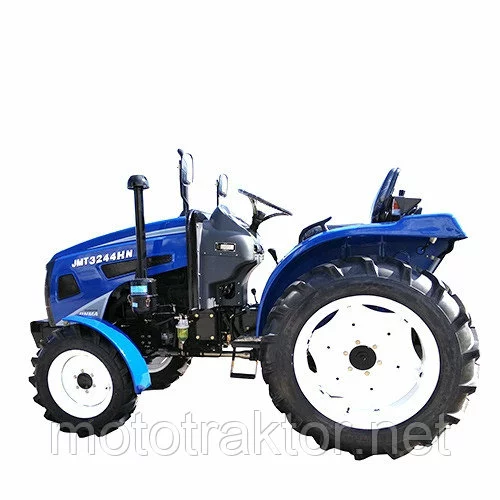 Трактор JINMA JMT3244HN укомплектован сельскохозяйственными шинами на обеих осях и колесами размерностью 6.00-16 на передней оси и 9.50-24 на задней оси. Снаряженная масса мини трактора JMT 3244HN составляет 1340 кг.