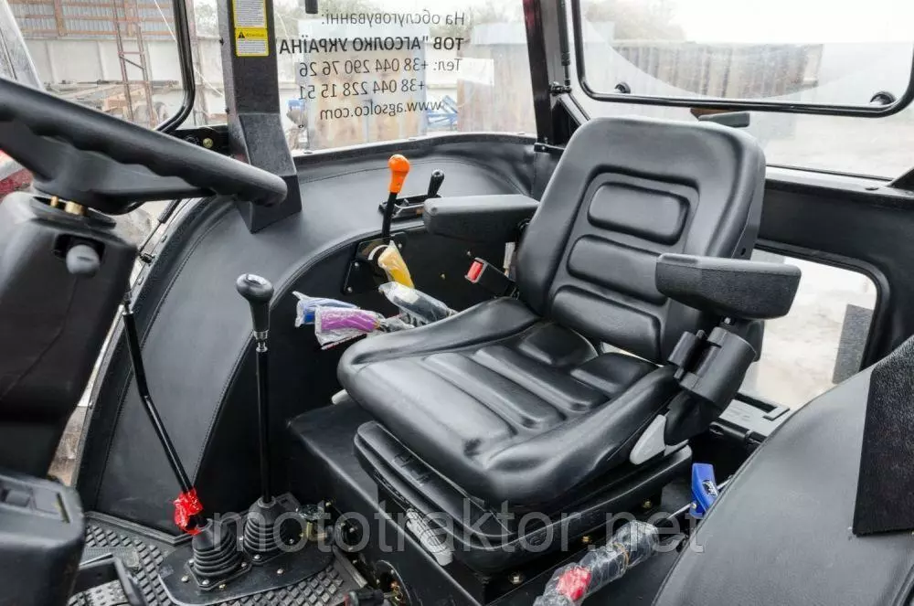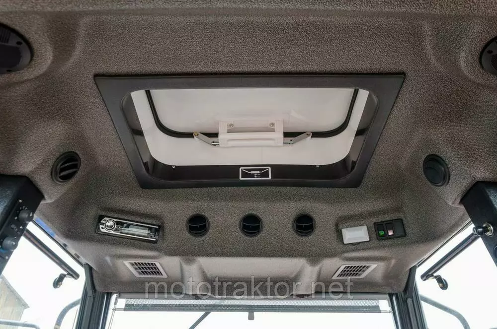 Герметичная кабина с фильтром салона; обшивка салона; система обогрева; система кондиционирования; комфортное сиденье GRAMMER SEAT с амортизацией и ремнем безопасности; магнитола с MP3; щетки с омывателями переднего и заднего окон; солнцезащитная шторка; розетка на 12V; подсветка номерного знака; ящик для инструментов и принадлежностей