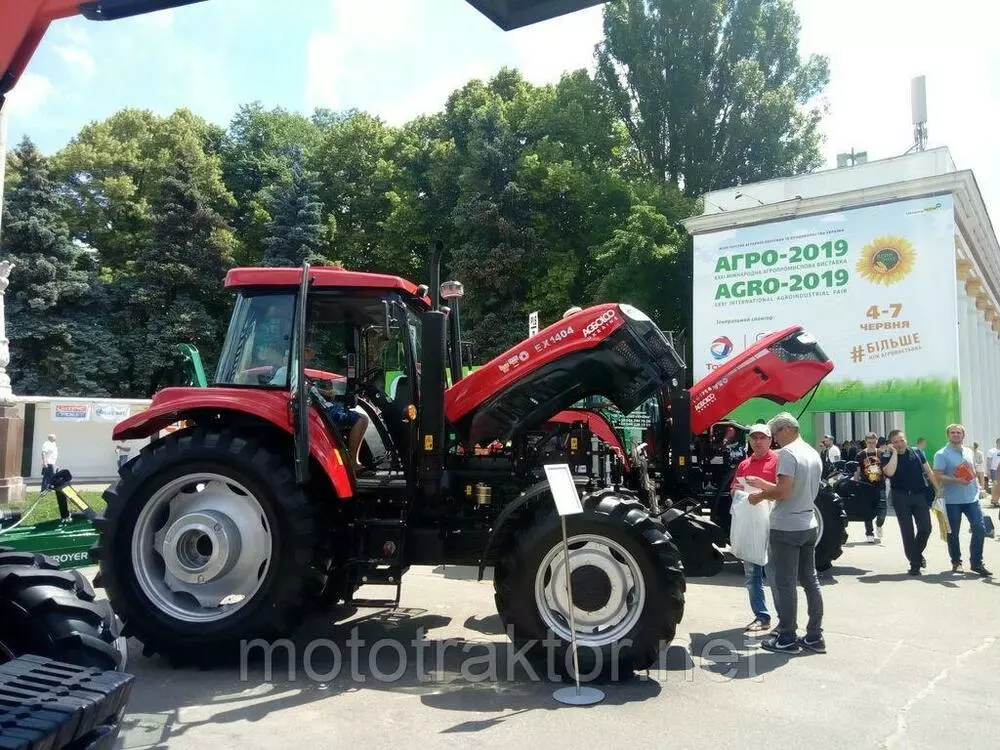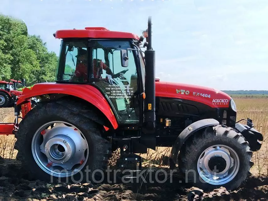 Модель YTO EX1404 есть дальнейшим развитием линейки тракторов мощностью до 150лс. Он оснащен 6-ти цилиндровым атмосферным дизельным двигателем мощностью 140лс с рабочим объемом 7,9л. Эти двигатели, которые изготавливаются по лицензиям и технологиям PERKINS (Великобритания), характеризуются большим запасом крутящего момента, что дает возможность справляться с перегрузками, и имеют низкий удельный расход топлива, что существенно сказывается на операционных затратах при эксплуатации трактора. Дополнительным плюсом этих двигателей есть наличие простой топливной системы, которая производится по лицензии BOSCH с рядным механическим топливным насосом, что снижает планку требований к качеству топлива. Благодаря достаточно большому весу тракторов этой серии и наличию у них высокоэффективной трансмиссии, которая производится с применением итальянских технологий (FIAT) и обеспечивает передачу крутящего момента от двигателя колеса с минимальными потерями, трактор EX1404 может справиться с самыми тяжелыми задачами в различных почвенно-климатических условиях. Для улучшения комфорта работы оператора, на тракторах данной серии штатно устанавливается сцепление двойного действия от ведущего производителя Германии - компании LUK, которая специализируется исключительно на производстве сцеплений, в то время как достаточно мощная навеска грузоподъемностью 4500кг дает возможность агрегатировать с трактрами этой серии широкий перечень навесного оборудования. Рабочее место оператора обеспечено всеми необходимыми механизмами управления и приборами контроля, в то время как герметичная кабина с системой фильтрации воздуха в салоне, системой кондиционирования и отопления, что обеспечивает оператору комфорт, достаточный для продолжительной работы в самых тяжелых условиях.