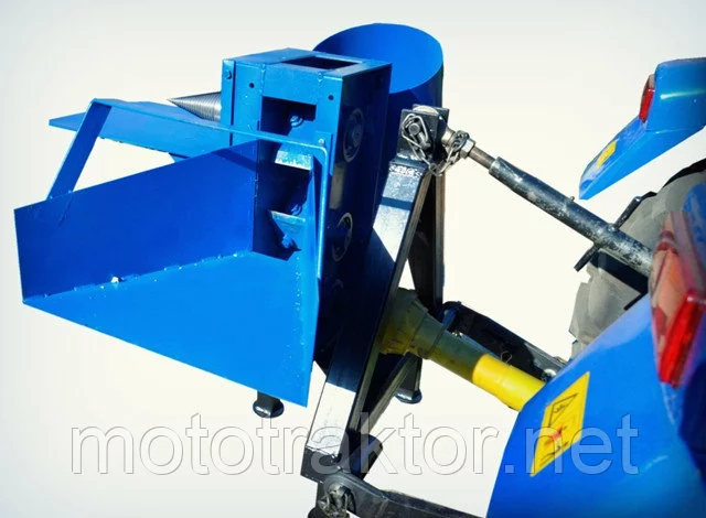 Измельчитель можно оборудовать конусом (приобретается отдельно) и столиком для колки дров (приобретается отдельно).Данный веткоизмельчитель ― практичный и оптимальный вариант для измельчения веток любой породы дерева. Вращение вала осуществляется с помощью карданного вала.